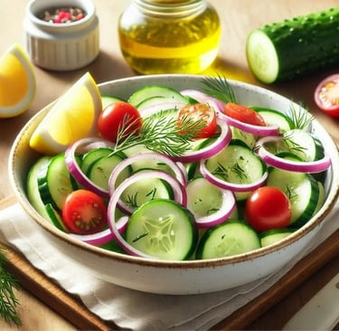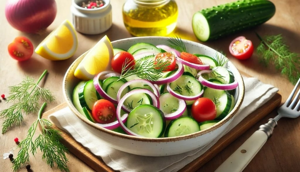 Fresh cucumber salad with lemon and dill—a perfect hydrating, low-calorie side dish. Discover its health benefits, nutritional value, and simple recipe.